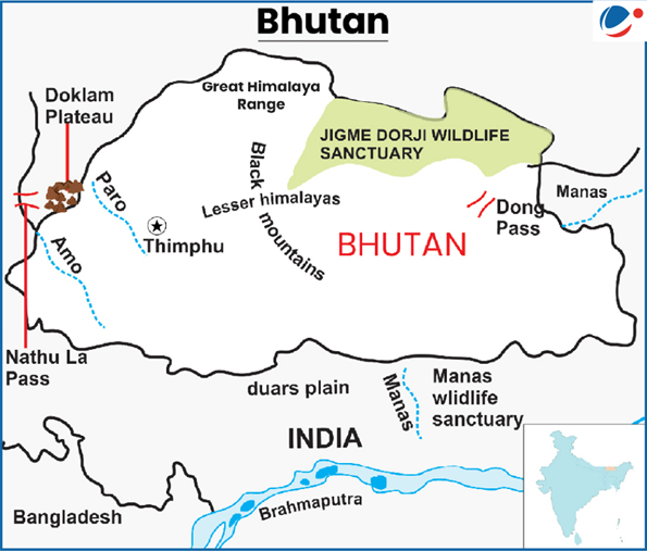- Strategic Buffer and Security: Bhutan's geographical location acts as a buffer between India and China. Bhutan's western border (Doklam) is vital to ensure the security of India's Siliguri Corridor.