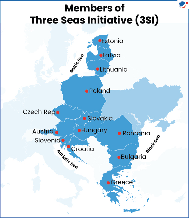 - It is an intergovernmental forum comprising 13 member states situated between the Baltic, Adriatic, and Black Seas.