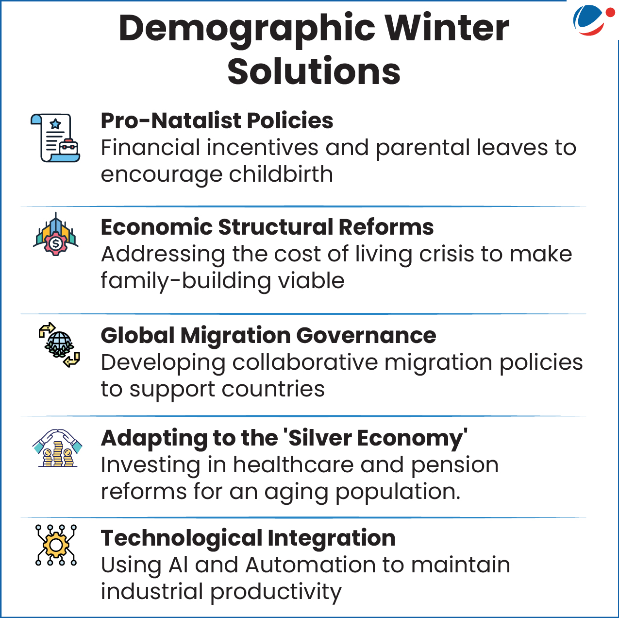 - This phenomenon called the “Demographic Winter” is no longer restricted to developed nations but is increasingly becoming a global reality with profound implications for the 21st century economy and social structure.