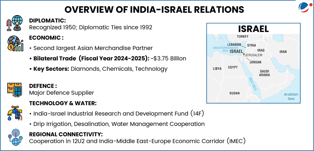 - Others: Exploring UPI–Israel payment linkage; launch of India–Israel Academic Cooperation Forum; India-Israel Parliamentary Friendship Group etc.