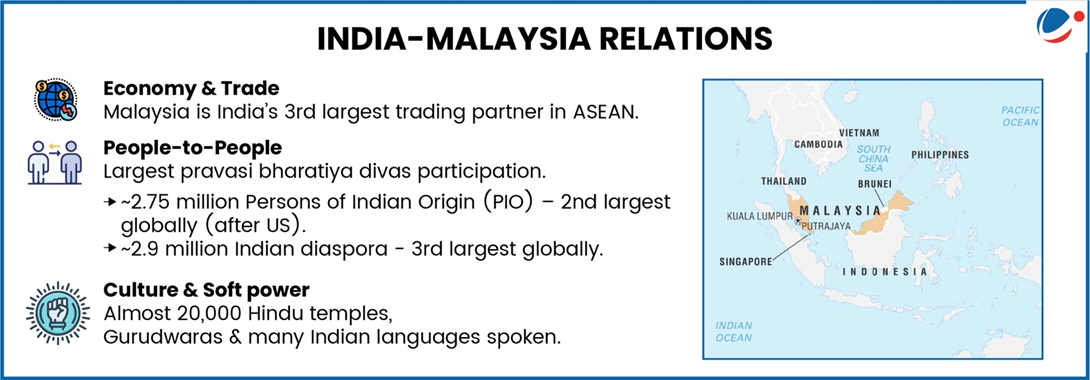 - India-Malaysia diplomatic relations were elevated to a Comprehensive Strategic Partnership (CSP) in August 2024.