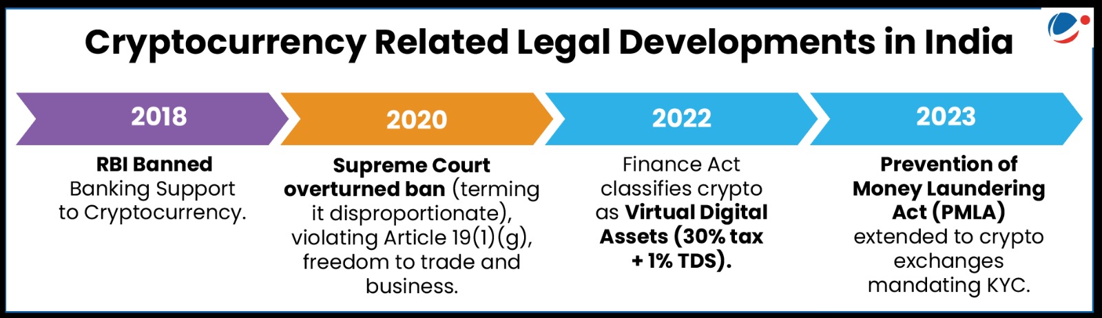 - Clarification on the RBI Ban (2018): The Court held that RBI had not banned virtual currencies as such; it had only prohibited banks from facilitating their trade.