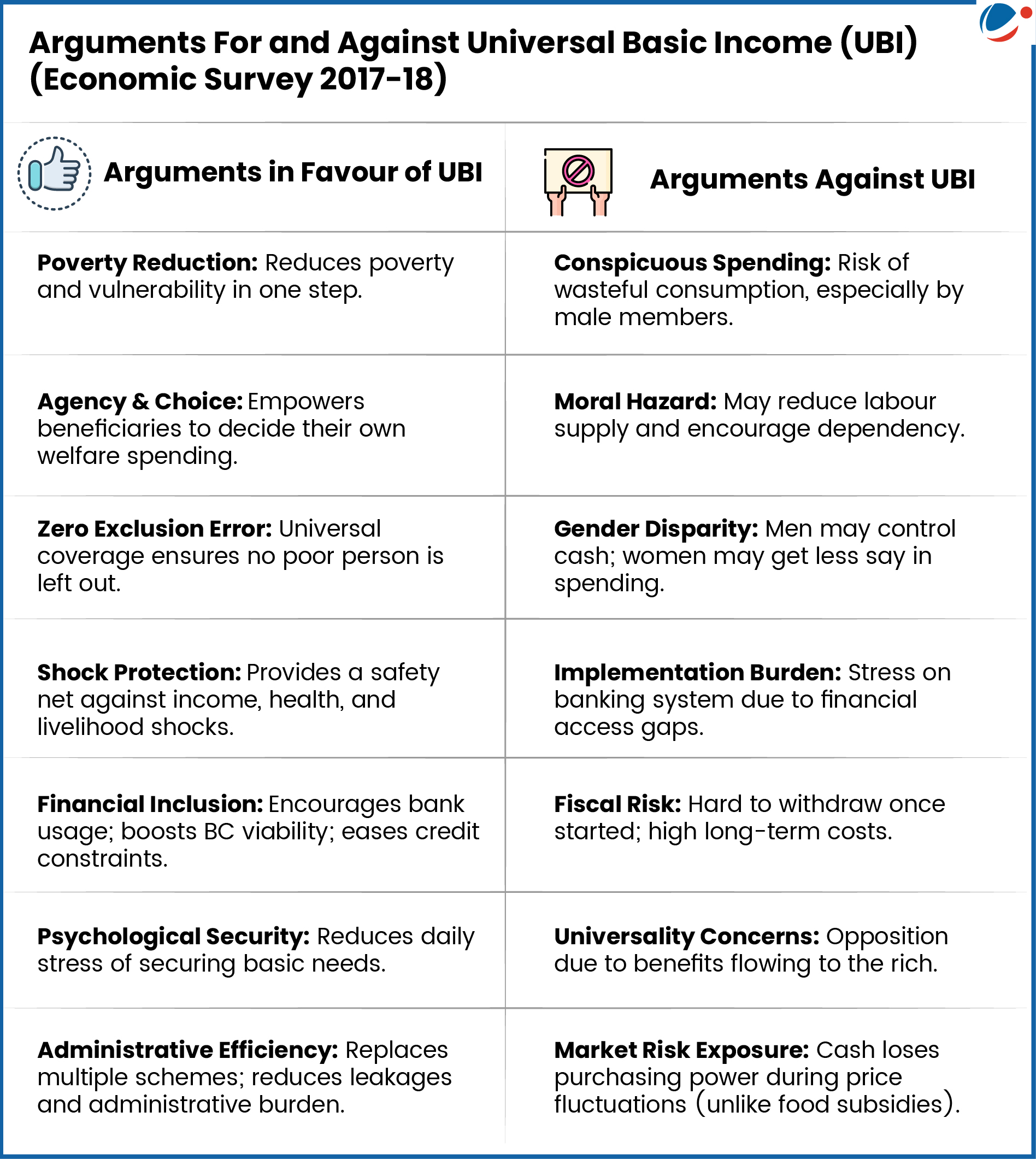 The relevance of UBI, first proposed by the Economic Survey 2016–17 as an alternative to fragmented welfare schemes, has grown sharper today due to a convergence of socio-economic pressures that traditional models can no longer address such as:-