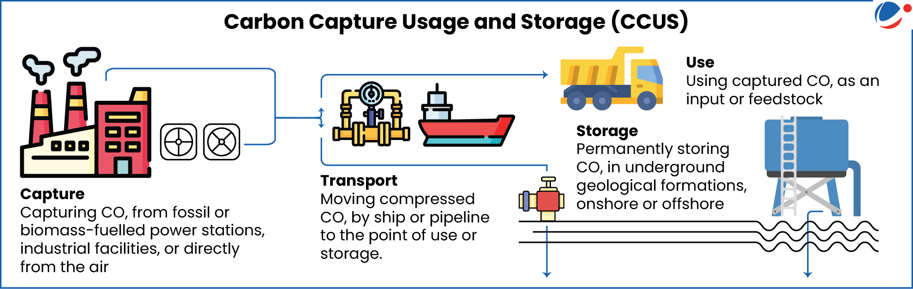 - Removing existing CO2 from atmosphere: Through either Bioenergy with Carbon Capture and Storage (BECCS) or Direct Air Carbon Capture and Storage (DACCS) – both having technological foundation with CCUS.