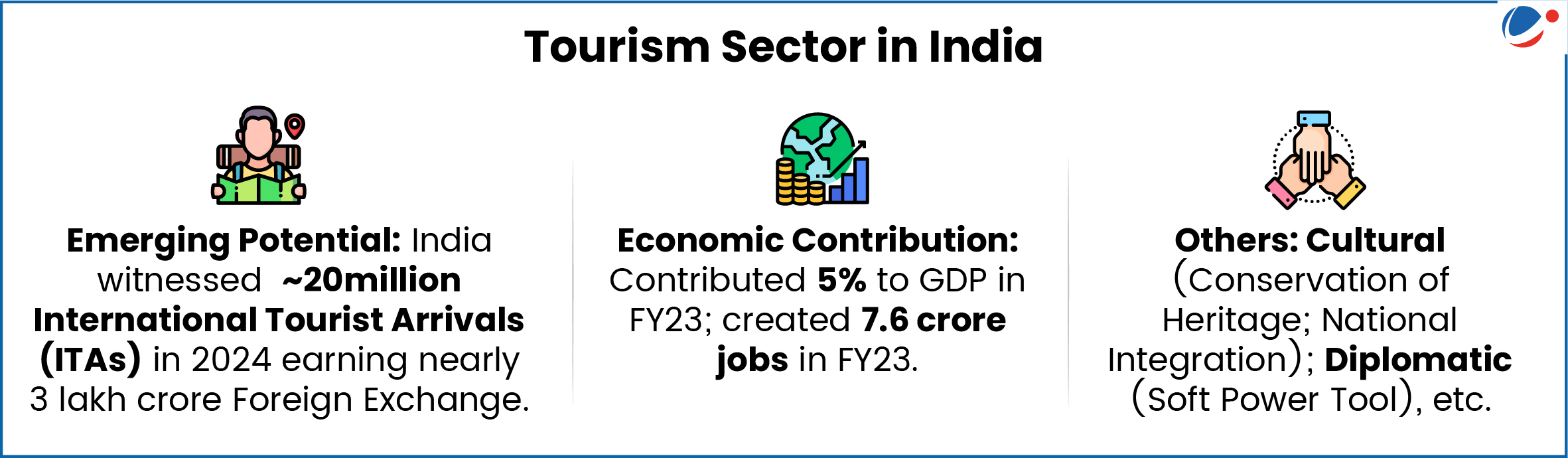 • Other initiatives include the PRASHAD Scheme, promoting medical tourism and MICE tourism, and facilitating employment-led growth through skill development and loans.