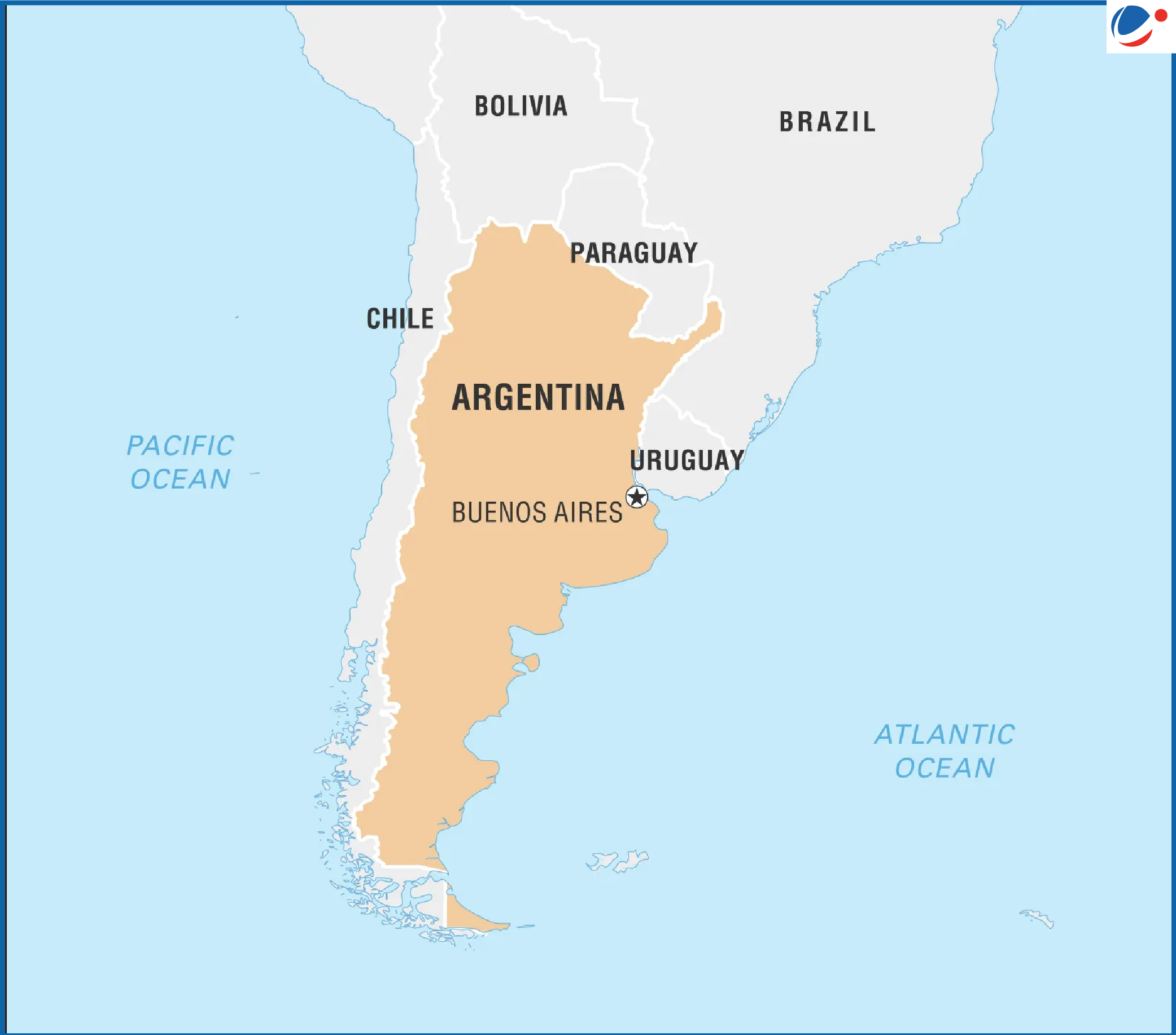 • Land boundaries: Chile (south and west), Bolivia and Paraguay (north), and Brazil, Uruguay (east).