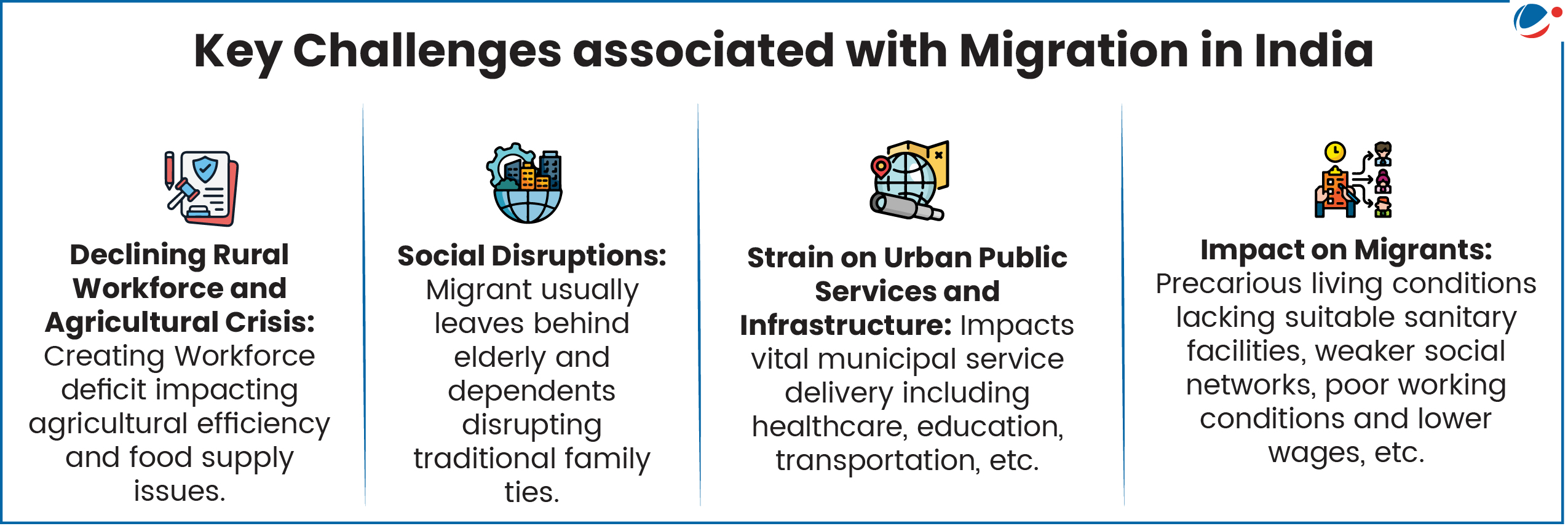 - Nearly one in four rural Indians (26.8%) was a migrant in 2020-21. (Economic Survey 2025-26).