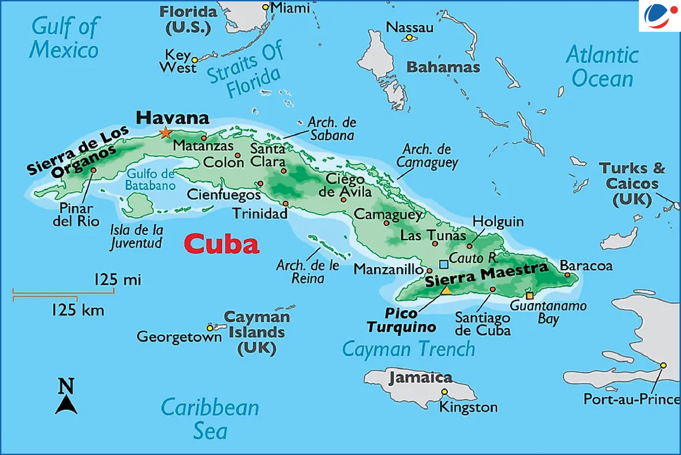 • Surrounding Water bodies: Atlantic Ocean, Cayman Trench, Gulf of Mexico, Straits of Florida and the Caribbean Sea.