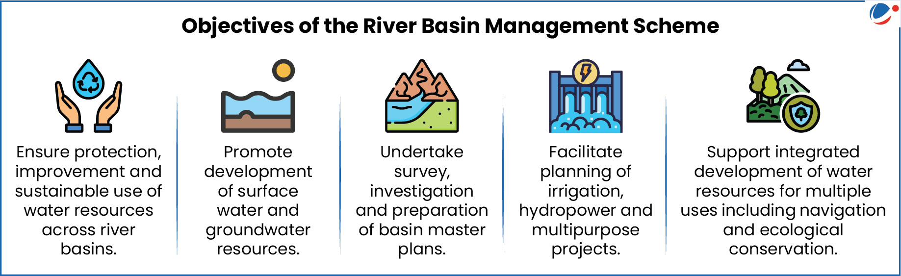 - These basins are prioritised due to their importance in National water security, Cross-border water management, Flood control and erosion management and Ecological stability.
