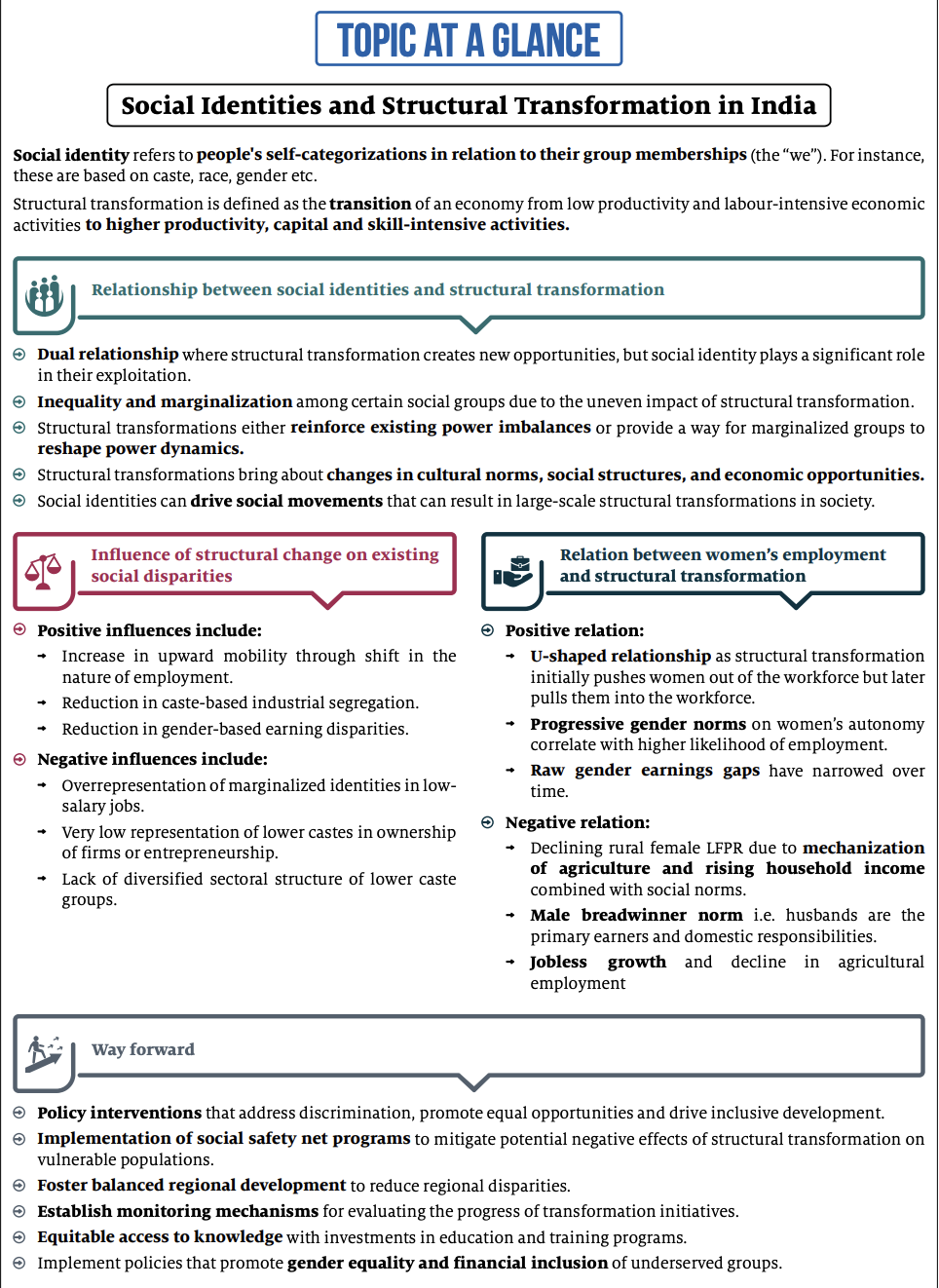 Unfortunately, despite years of rapid economic growth, India’s structural transformation remains slow. The problems ailing the system including employment, inequality etc. are compounded by the fact that one’s social identity continues to play a crucial role in determining one’s opportunities.