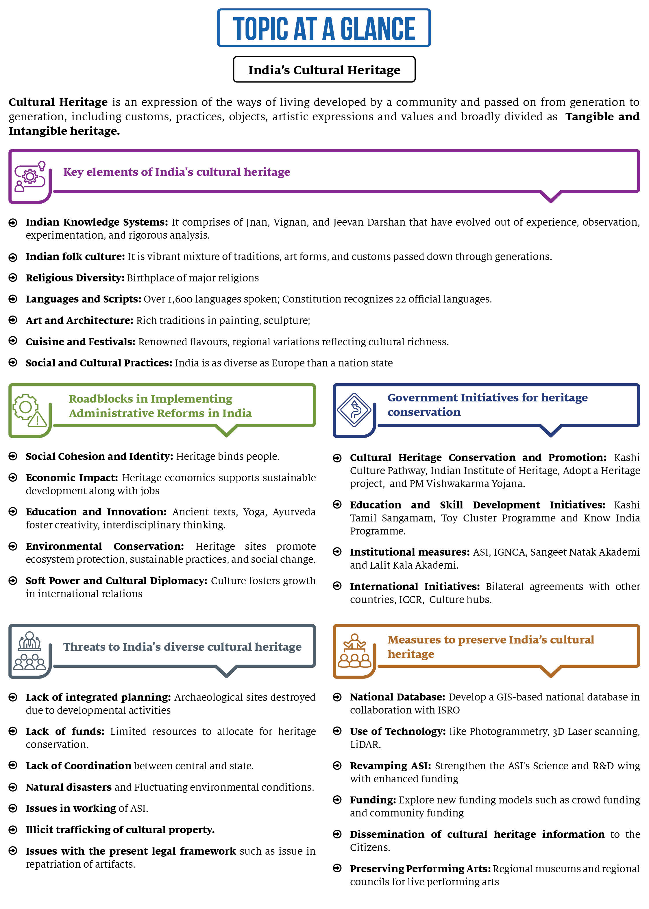India, often described as a subcontinent within a country, has a cultural heritage that is both rich and diverse. This heritage reflects the country's deep and varied history. From the ancient Indus Valley Civilization to the vibrant culture of today, India's story is one of blended traditions, beliefs, and arts, shaped by its many ethnic groups and religions. Each cultural artefact in India is a piece of the country's collective memory, connecting the present to the past. However, in today's globalized world, preserving this heritage comes with challenges. Efforts to conserve and interpret cultural artefacts must keep pace with the pressures of modernization. Despite these challenges, India's cultural legacy continues to be a source of unity and strength, transcending the bounds of time.